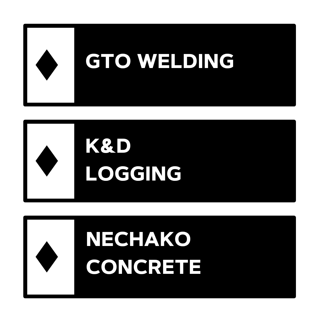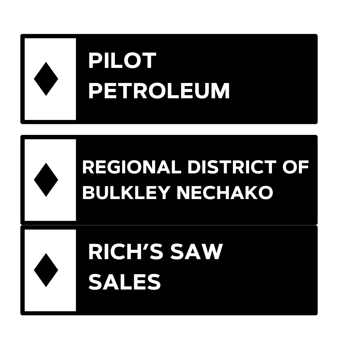 Thank you to our 2024/2025 Black Diamond Sponsors: Arrow Transport, Dr. Steve Shenk, Fort Machine Works, GTO Welding, K&D Logging, Northland Automotive, Nechako Concrete, Nak’azdli Mechanical, Nak’azdli Whut’en, Northland Automotive, Pilot Petroleum Rich’s Saw Sale, Tanizul Timber, Ubleis Logging, and Yus Cho